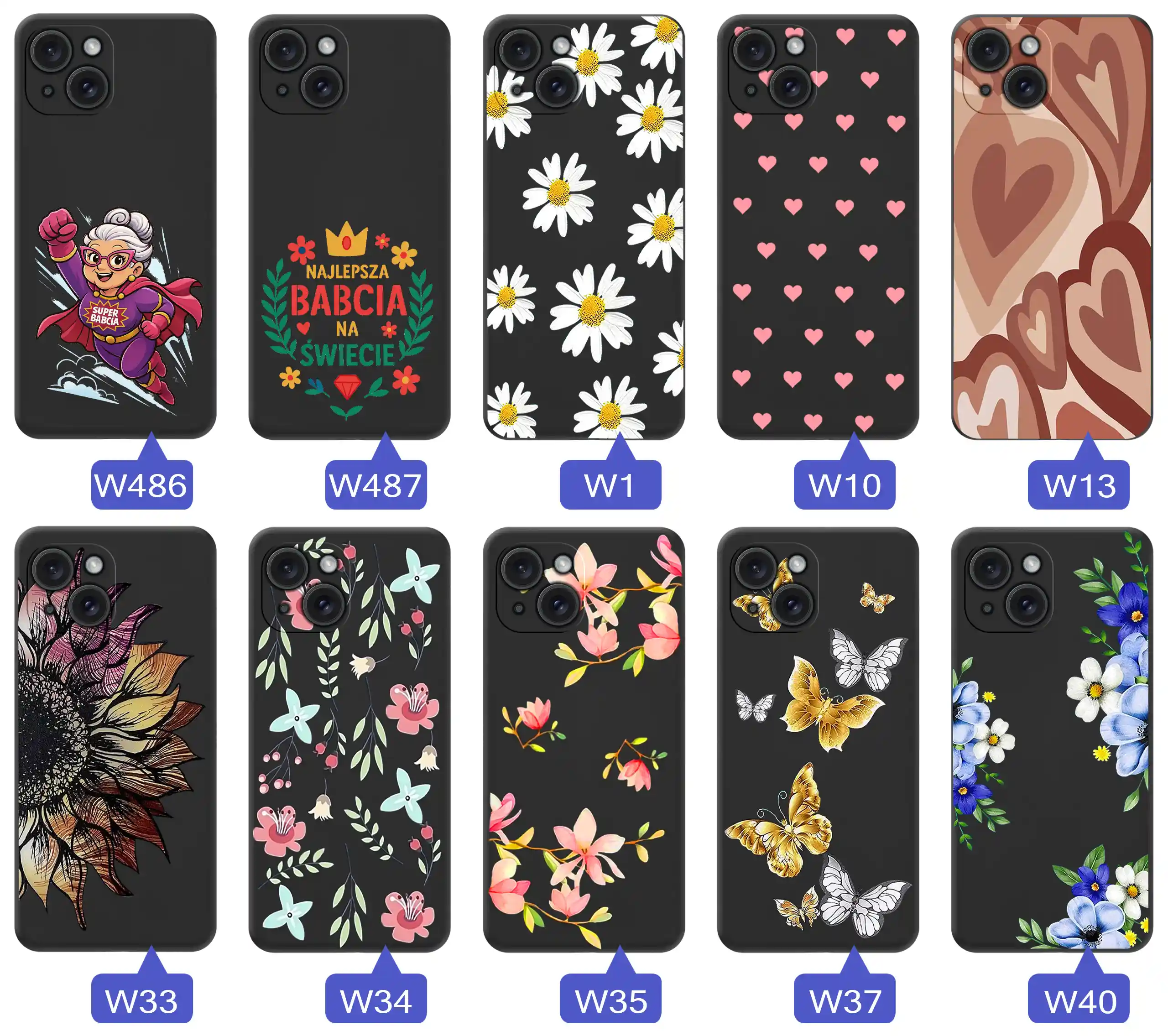 Każdy wzór jest malowany na etui, dzięki czemu grafiki są wyraziste, estetyczne i trwałe. Motywy zostały dobrane tak, by kojarzyły się z ciepłem, spokojem i naturą – dokładnie tym, co najlepiej oddaje charakter Dnia Babci.