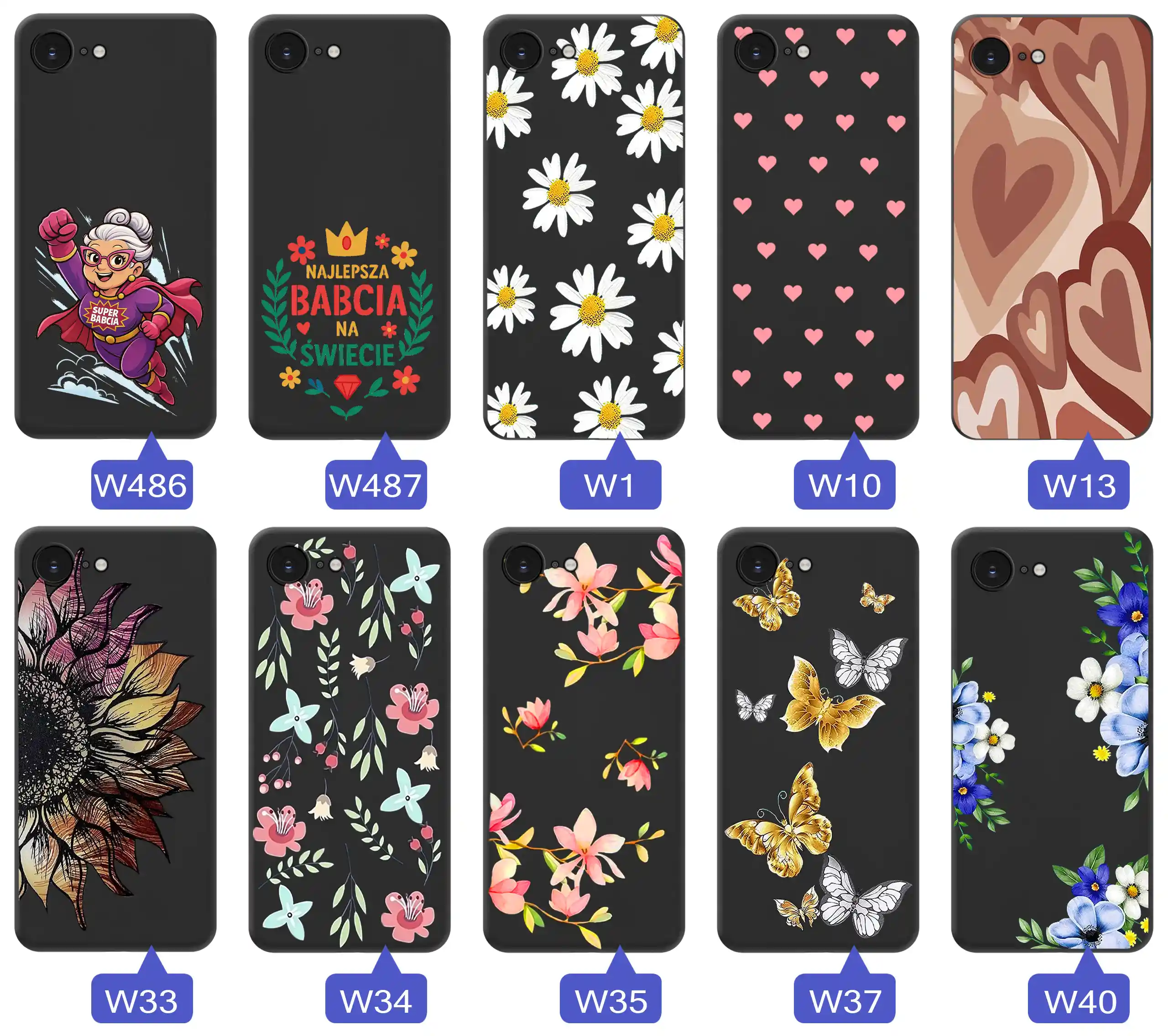 Każdy wzór jest malowany na etui, dzięki czemu grafiki są wyraziste, estetyczne i trwałe. Motywy zostały dobrane tak, by kojarzyły się z ciepłem, spokojem i naturą – dokładnie tym, co najlepiej oddaje charakter Dnia Babci.