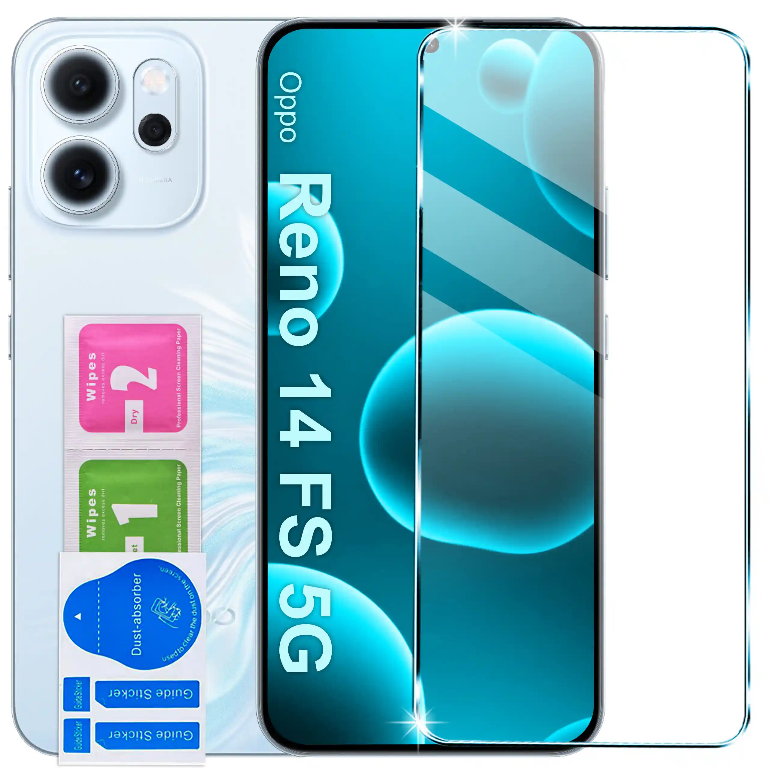 W zestawie znajduje się szkło hartowane 9H do Oppo Reno 14 FS 5G / 14 F 5G, które zwiększa odporność ekranu na zarysowania.