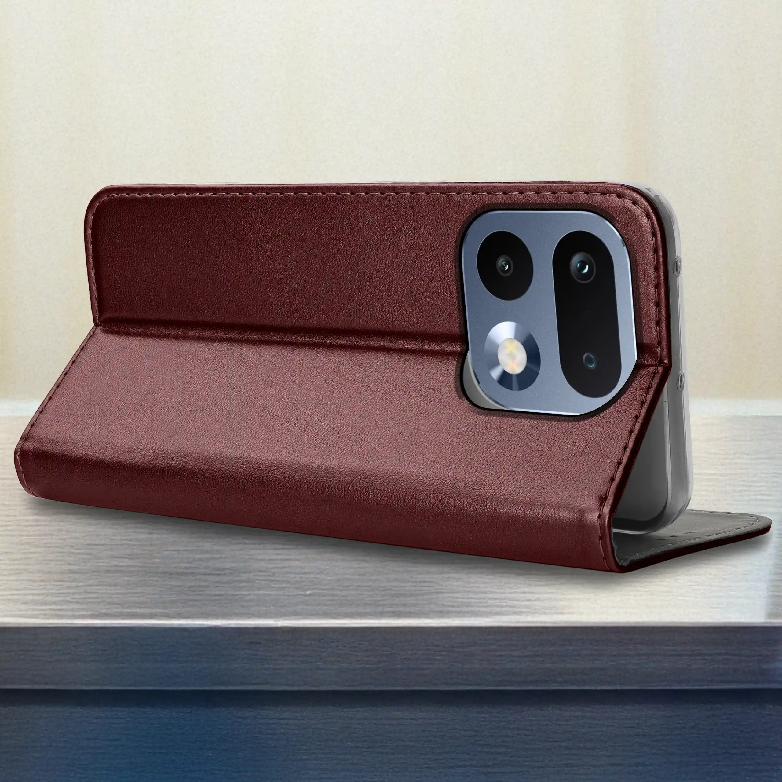 Etui z klapką skórzane do Realme 16 Pro 5G burgundowe – praktyczna ochrona telefonu i elegancja każdego dnia
