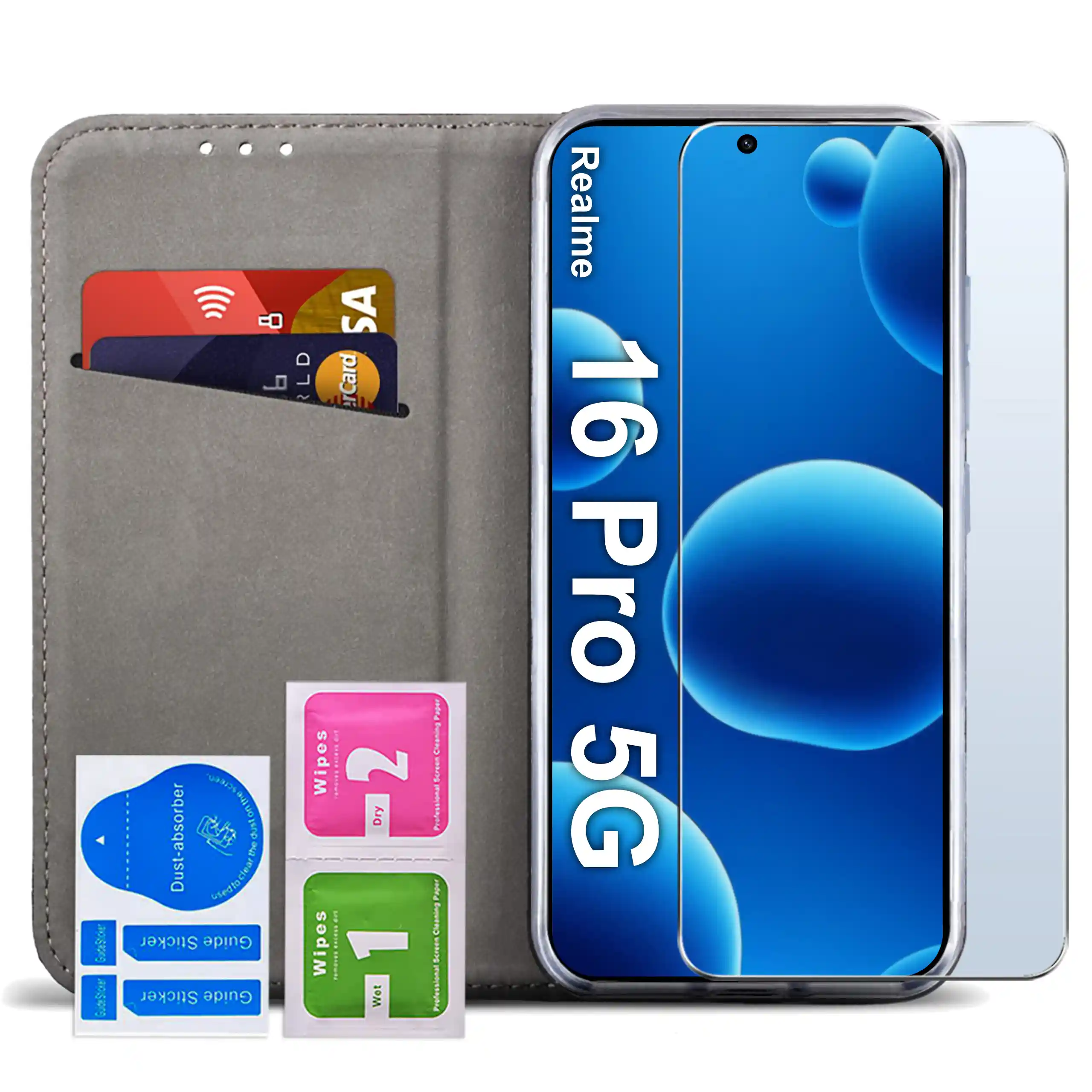 W zestawie znajduje się szkło hartowane 9H do Realme 16 Pro 5G, które zabezpiecza wyświetlacz przed zarysowaniami.