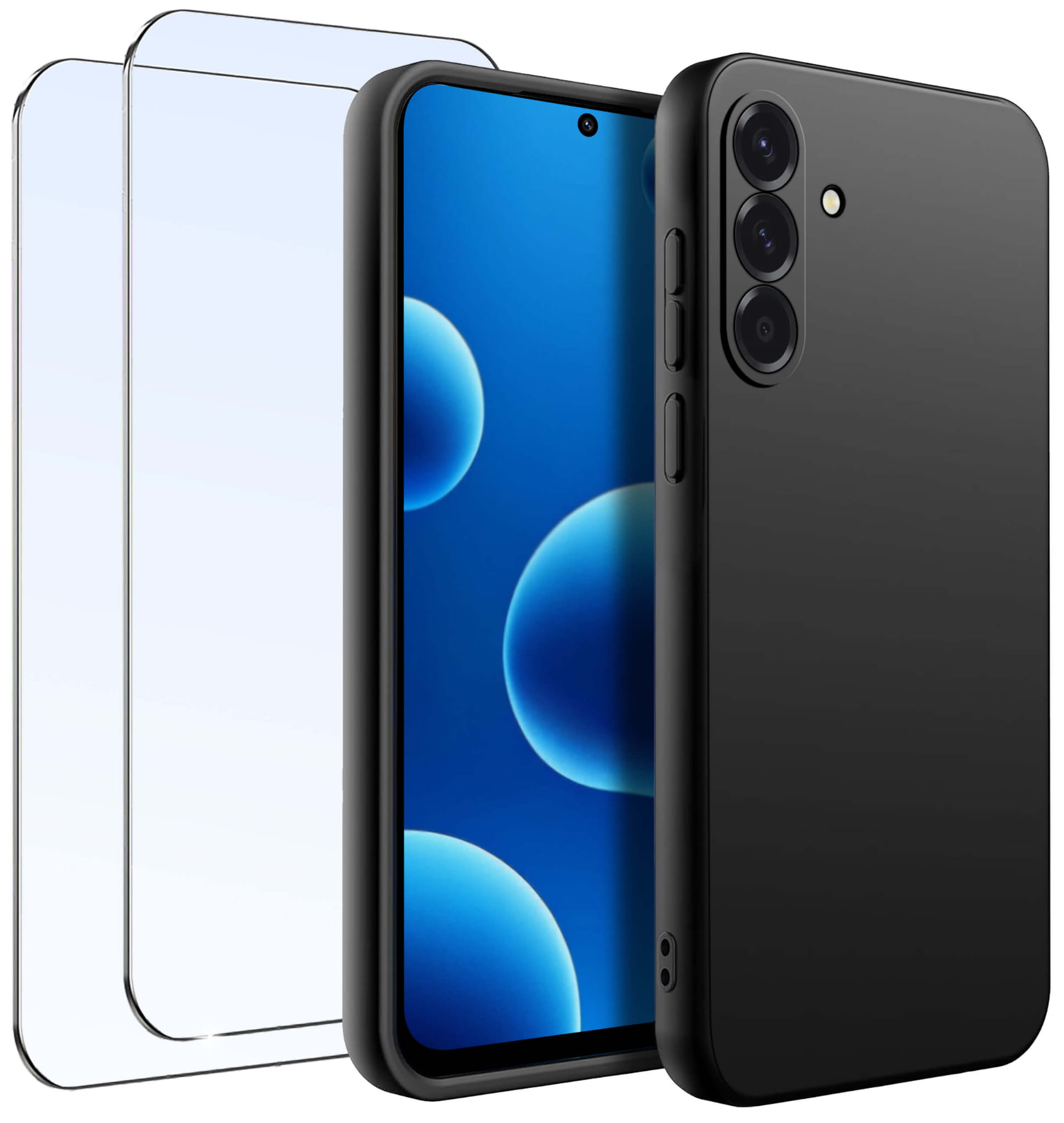 Etui do Samsung Galaxy A56 czarne matowe z zestawem 2 szkieł
