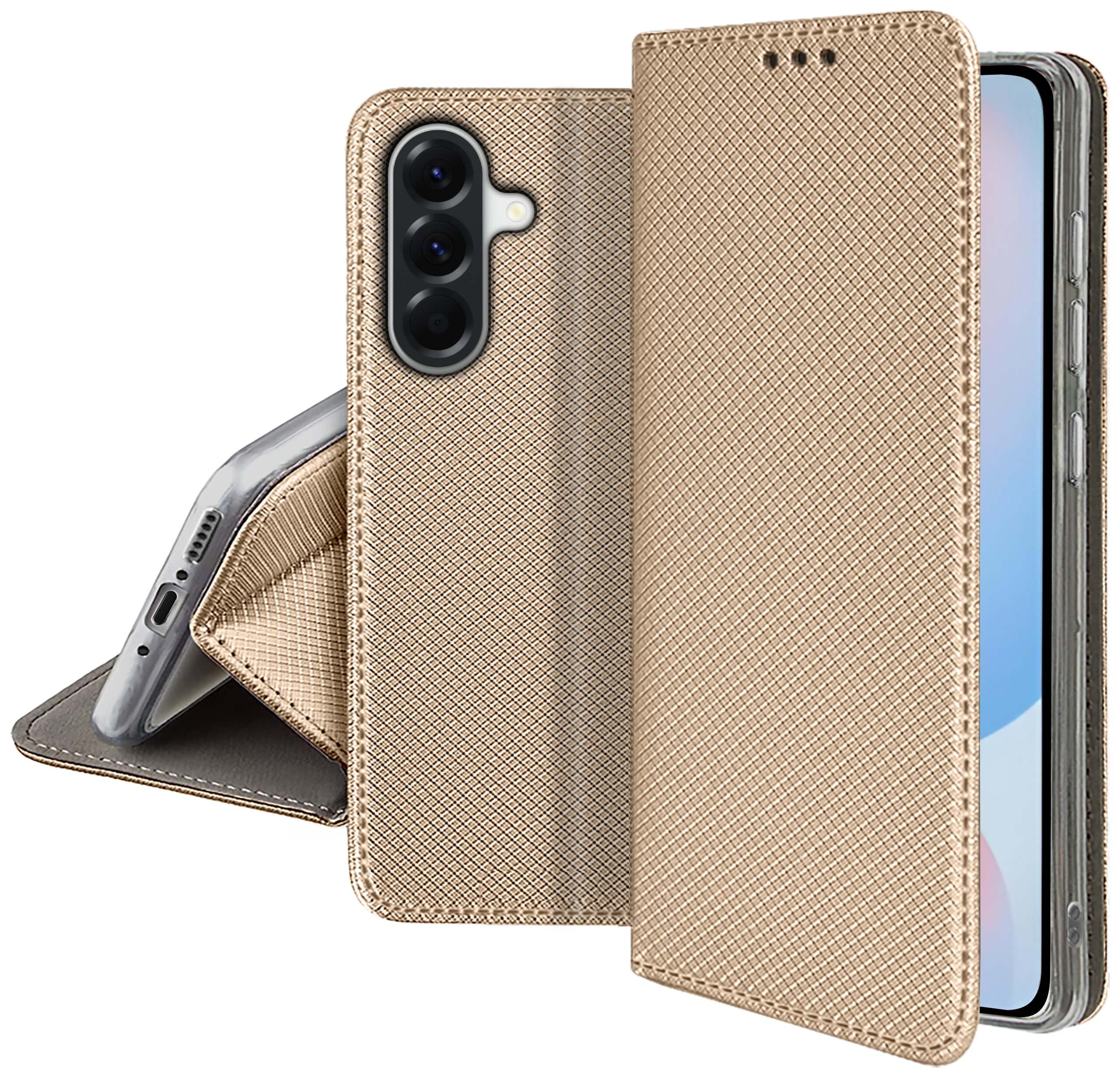 Etui do Samsung Galaxy A56 złote zamykane ze szkłem