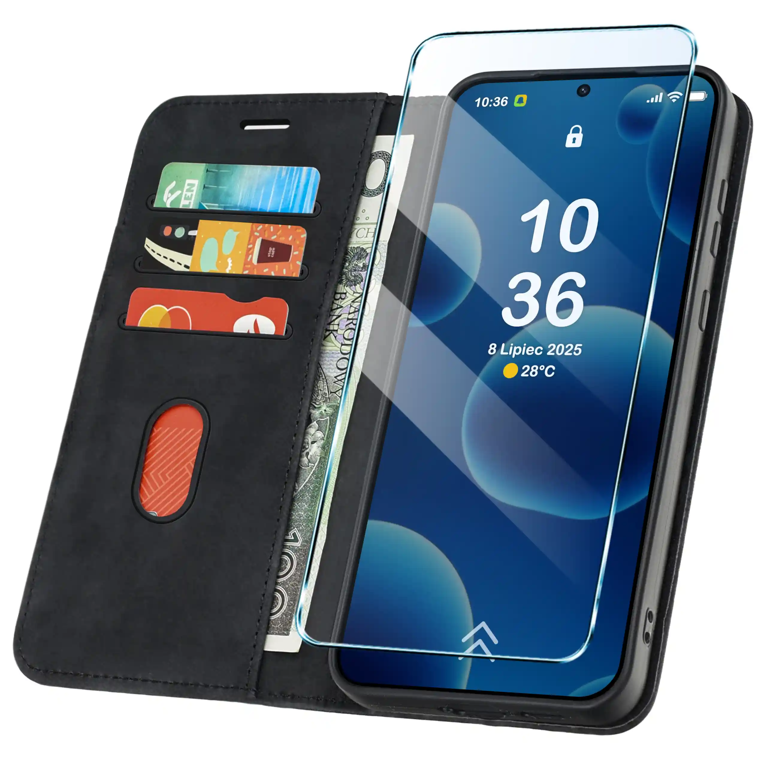 | Typ | Etui z klapką + szkło hartowane |