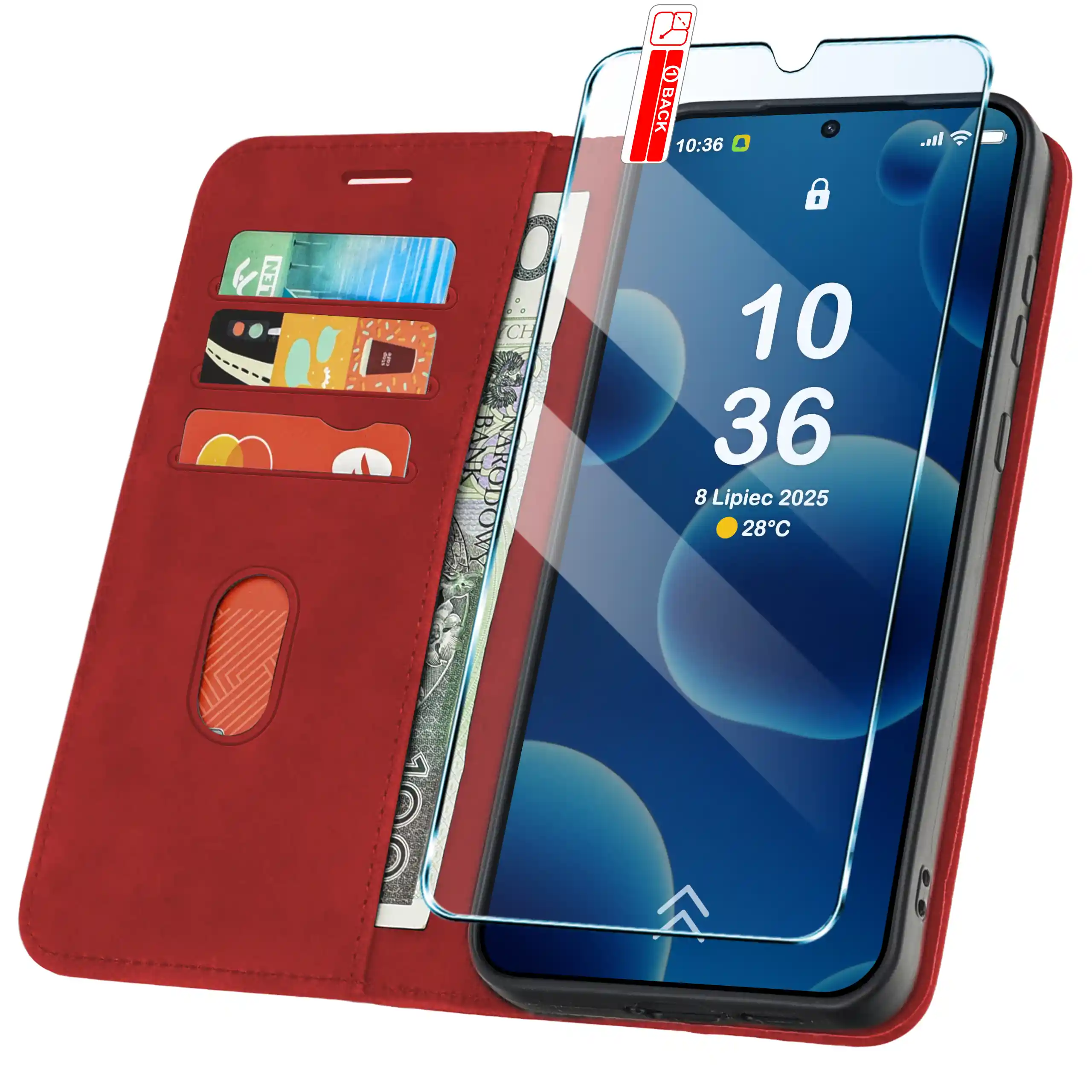 Etui do Samsung Galaxy S26 z klapką skórzane Velvet czerwone ze szkłem