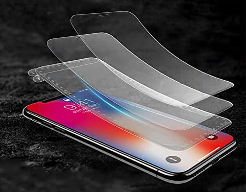 - Składa się z kilku warstw, w tym środkowa to hydrożel, a zewnętrzna to powłoka hydrofobowa i oleofobowa, które ograniczają widoczność odcisków palców, rys oraz smug.