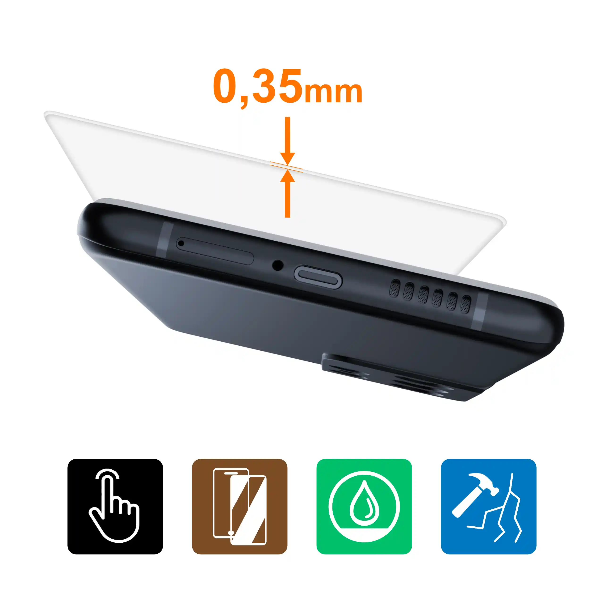 ✔ Pomimo grubości 0.35 mm folia zachowuje wysoką przejrzystość i pełną czułość dotyku
