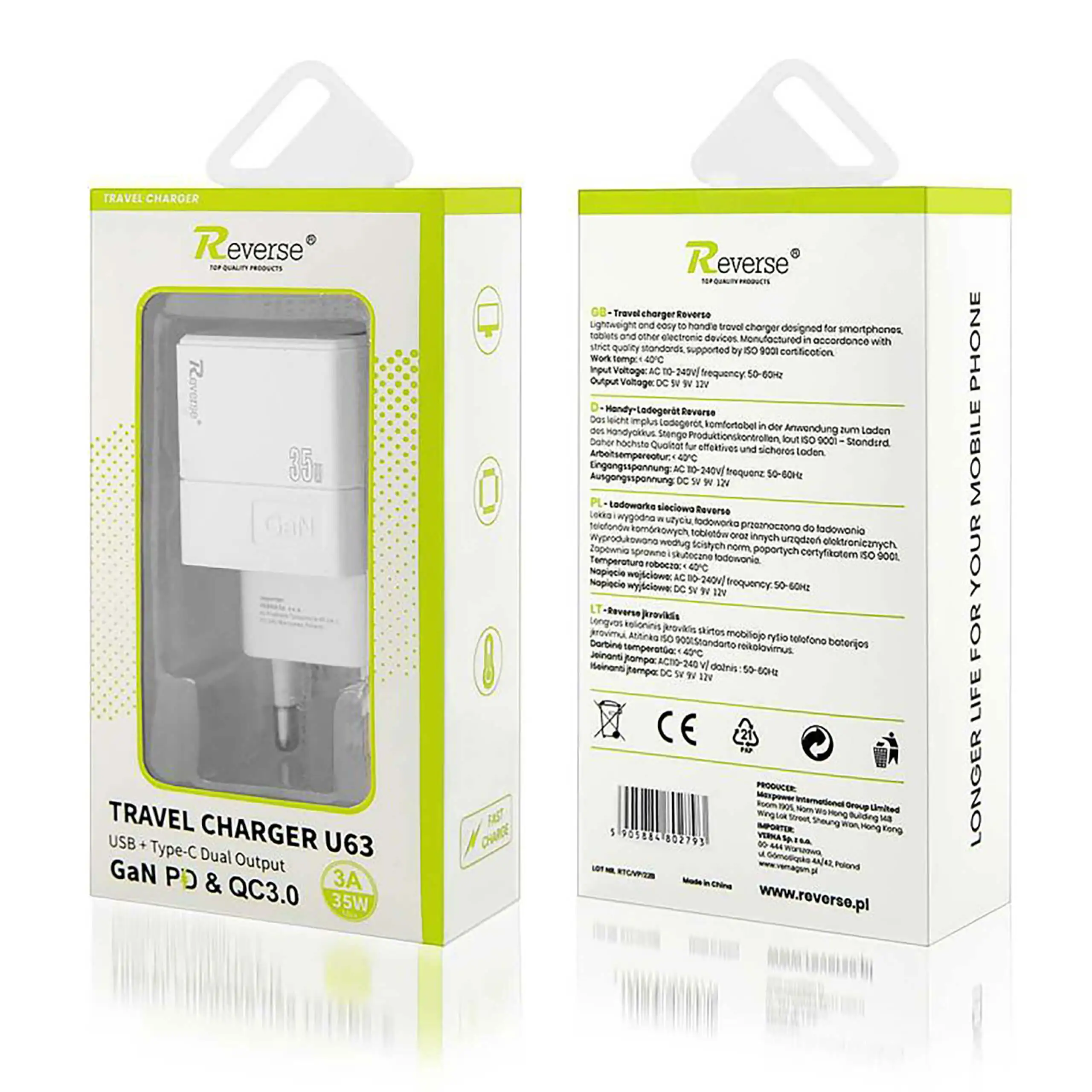 Uniwersalna ładowarka sieciowa USB Typ-C 35W REVERSE: Parametry